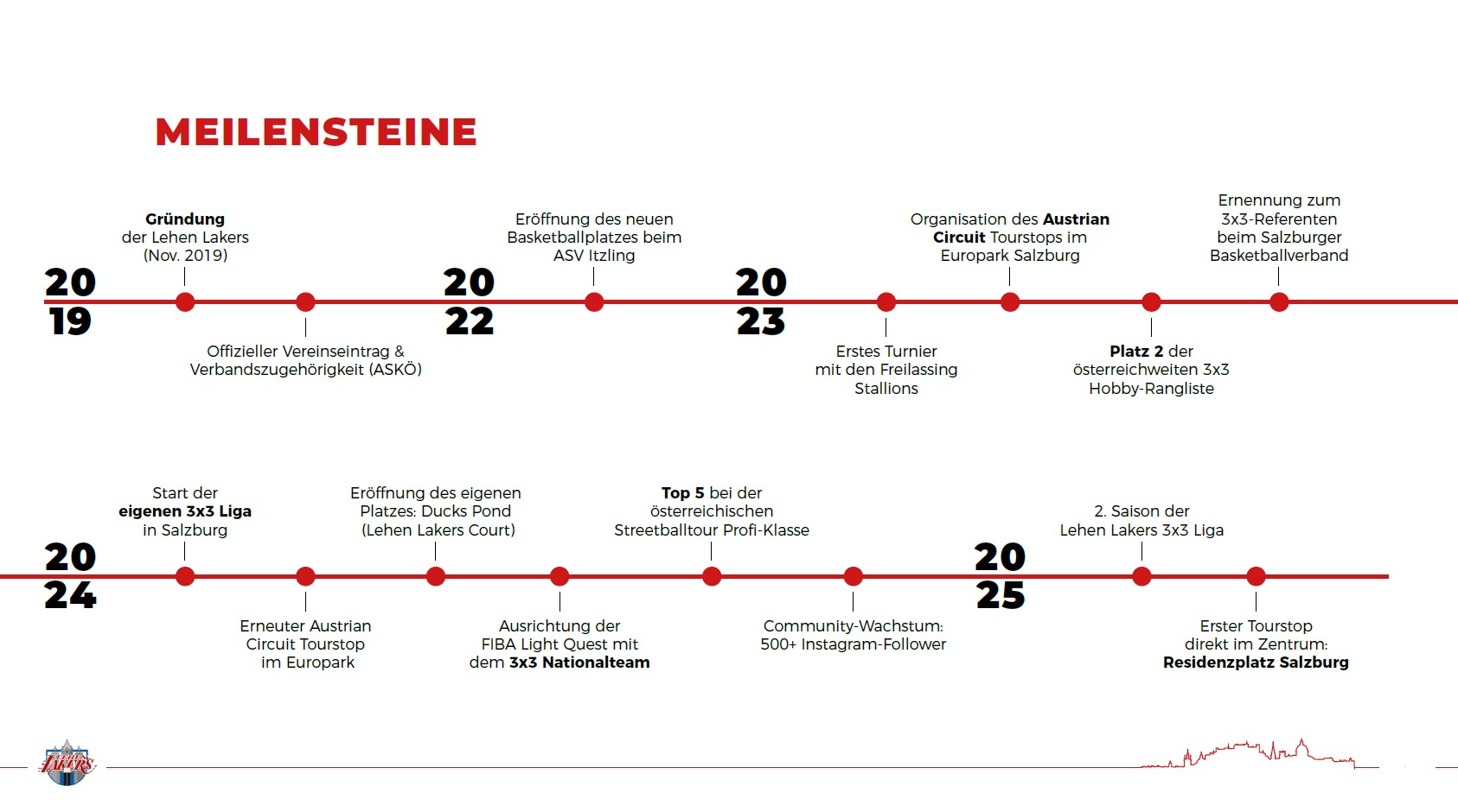 Der Basketballverein Lehen Lakers wurde im Jahr 2020 als erster österreichischer 3x3 Basketballverein in Salzburg gegründet. Unser Schwerpunkt liegt beim 3x3 Spielformat, bei welchem zwei Mannschaften mit jeweils 3 Spielern gegeneinander auf einen Korb antreten.